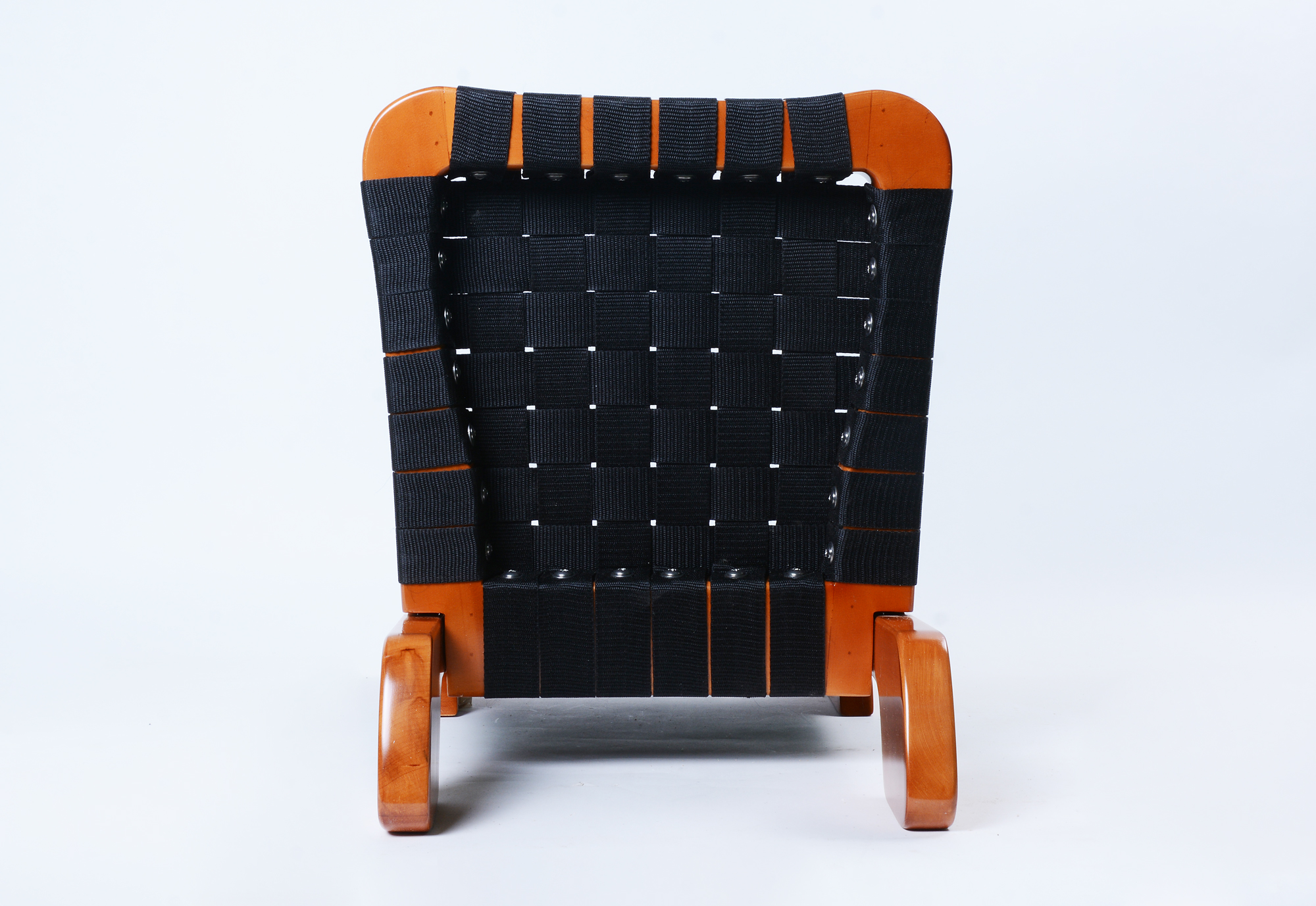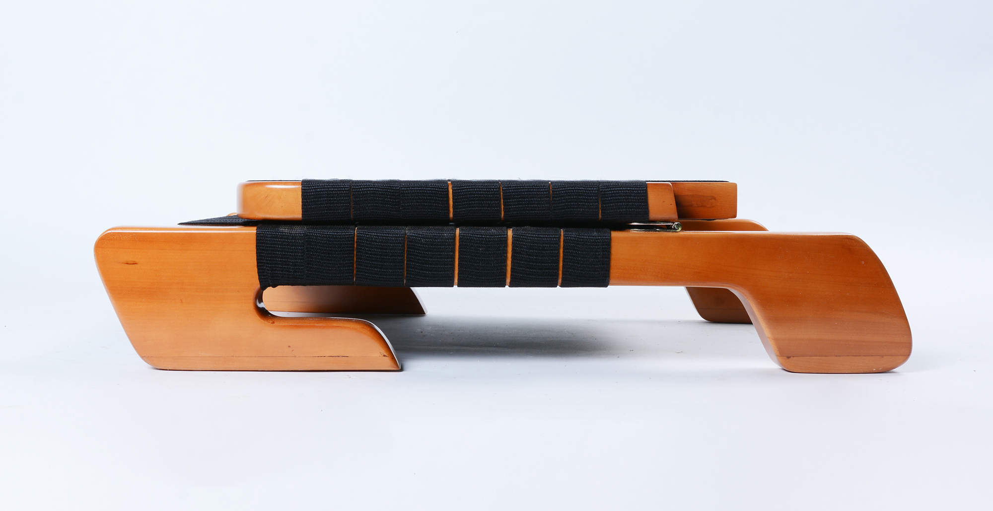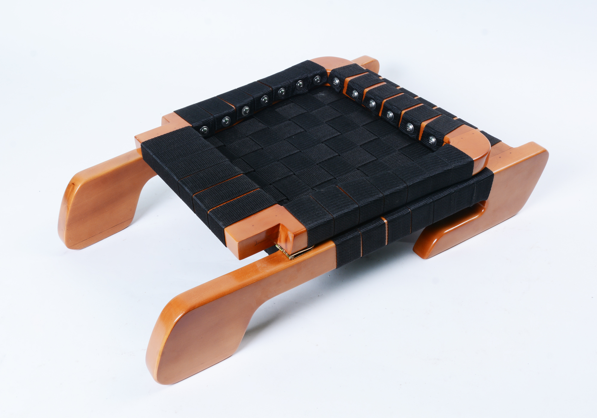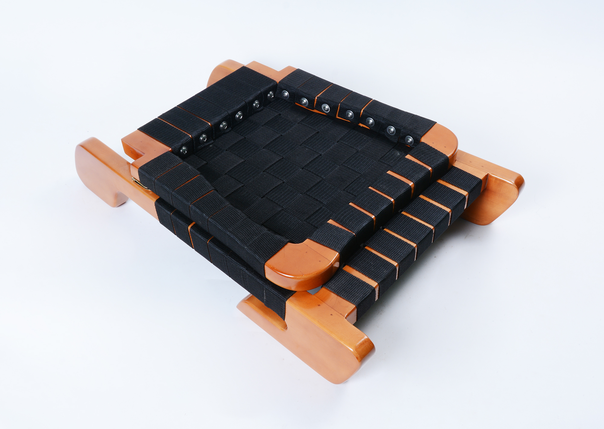 Kanojos sėdynės rėmas pagaminta iš raudonojo Kanados kedro medienos, minkštoji dalis iš tvirto pinto juodo austo diržo.