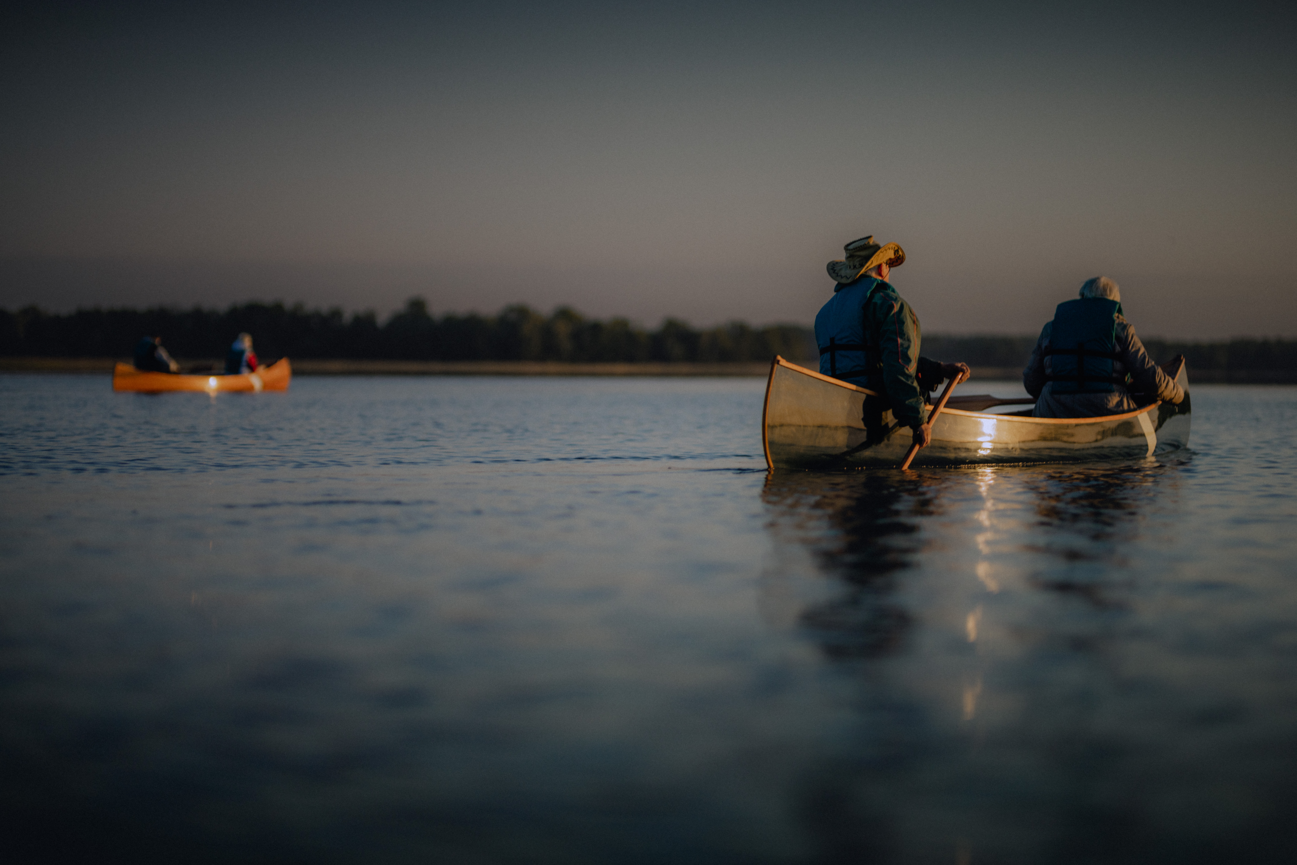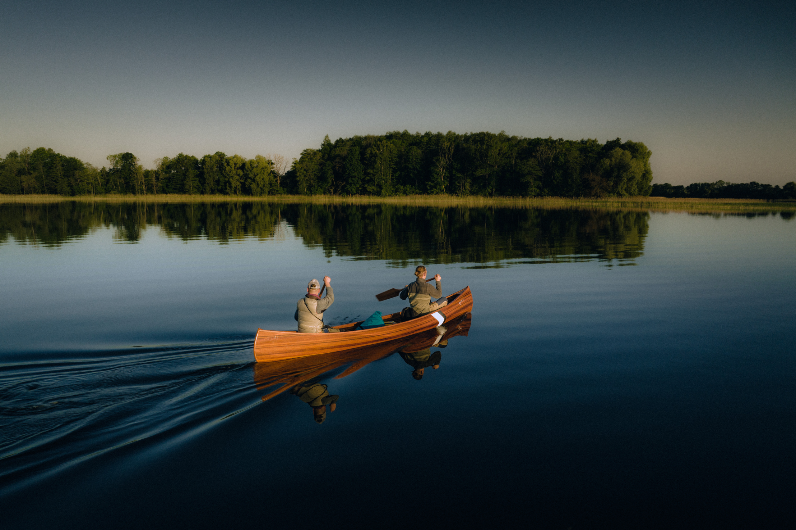 Į komplektą įeina du mediniai rankų darbo irklai, pagaminti iš aukščiausios rūšies raudonojo kedro ir raudonmedžio.